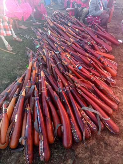 This activity showing the graduations of Maasai worriors from the jungle or meat camp its join celebration from different clans and actually after this right passage normally a worrior is permitted to marry a lady and this picture is showing many culabashes it contains milk for the worriors to a symbolic of graduations